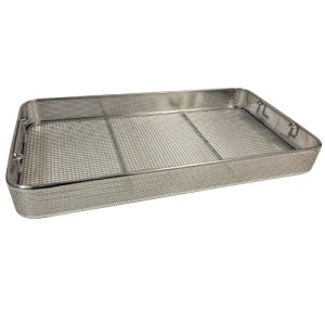 Sterilisation basket – flat wire mesh base, perforated sides – small sizes